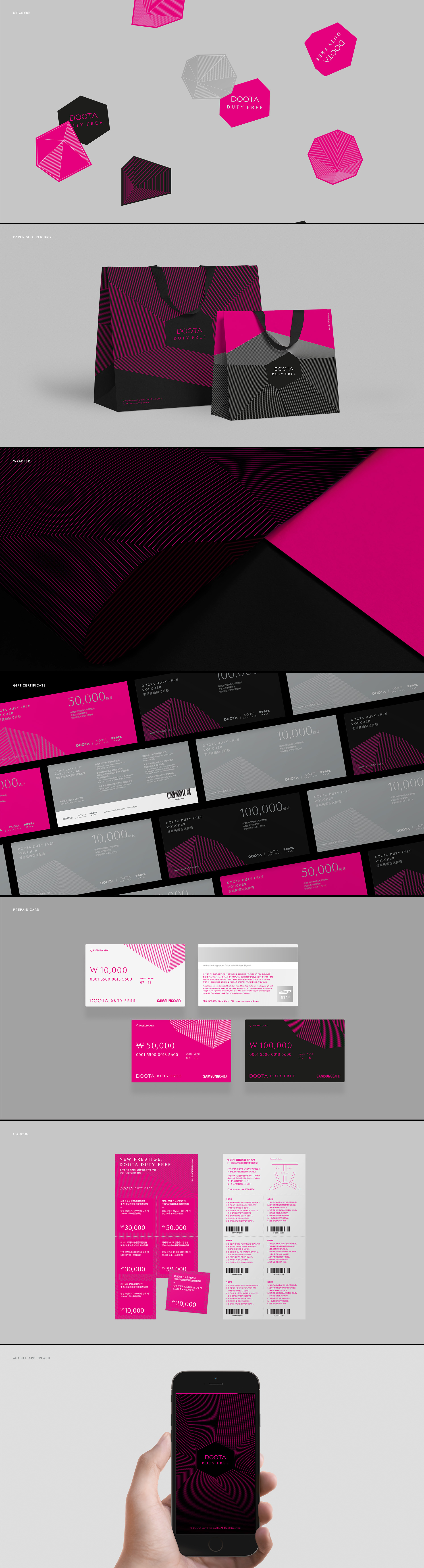 by using visual motif which uses well-matched line to simple and minimal motif and logo type.The visual motif of DOOTA DUTY FREE, blended with lots of lines, delivers another chicness